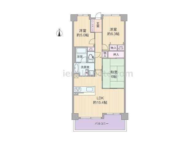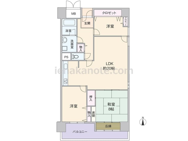 専有面積92.46平米の3LDK。LDKから全居室へ出入りでき、キッチンはI型の壁付け・オープンタイプ。和室8帖にある床の間・広縁が趣きのある和の空間を演出。各居室と室内廊下に収納スペースがあり、玄関横の洋室にはクロゼットが2カ所設けられ...