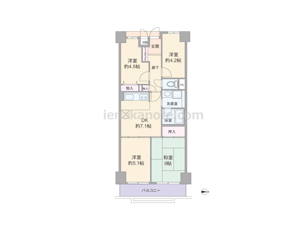 間取り:4DK 広さ:58.59平米 (間取りID: 6606)