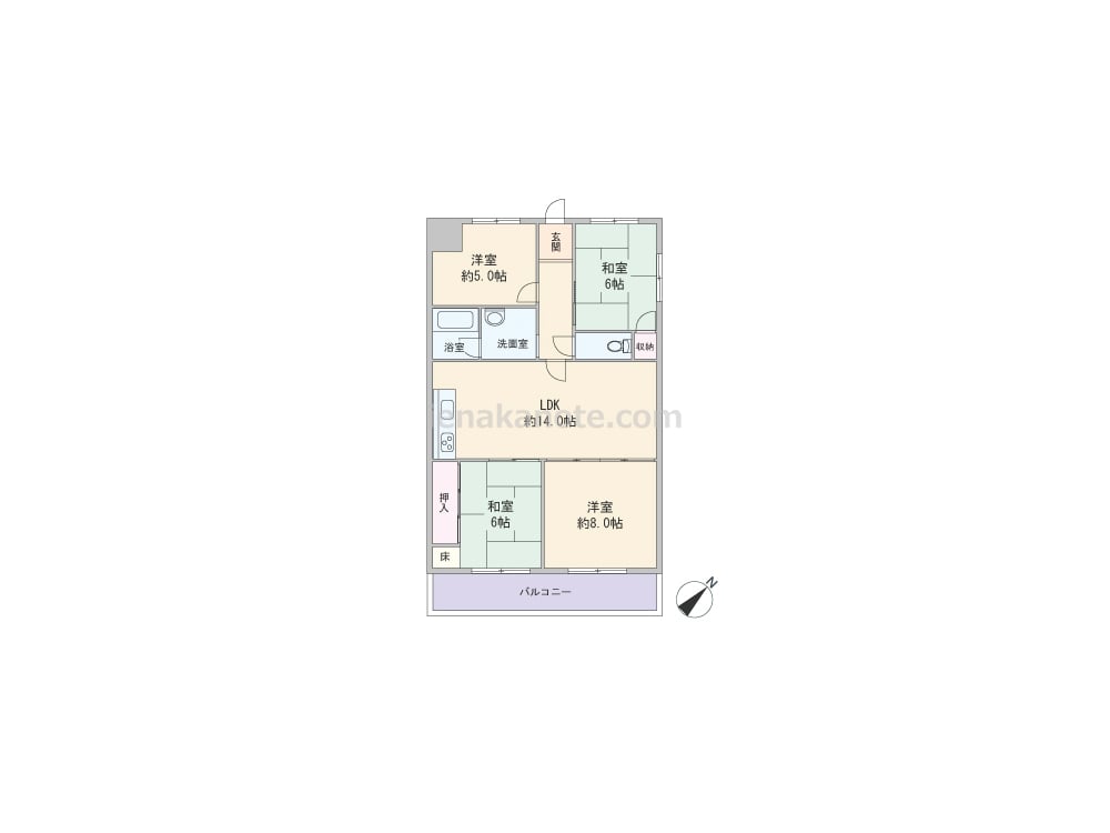 専有面積83.75平米の4LDK。バルコニーに面した2部屋は、LDKとの間の扉を開放して、LDKの延長として利用したり、区切って居室にしたりと生活シーンに合わせてフレキシブルに使えます。北側の2部屋はLDKから離れた配置の為、受験生の勉強部屋や書斎での利用、また洋室5帖は、収納スペースが無く、納戸としての利用にも向いています。