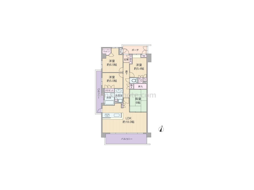 専有面積88.24平米の4LDK。玄関前に専用ポーチとトランクルームが付いたプラン。LDKは約18.0帖大とゆとりがあります。カウンタータイプのキッチンは料理をしながら家族とコミュニケーションが取りやすく、キッチン横にはバルコニーへの勝手口付き。和室6帖は2カ所からアクセス可能。LDK側の襖を開放すれば約24.0帖大の大きな空間としても使えます。収納スペースが各所に設けられ、浴室の窓は換気がしやすく快適。バルコニーが2カ所あり、ガーデニングを楽しむのにぴったりです。