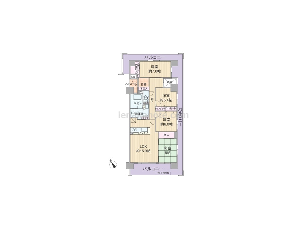 - バルコニー面積: