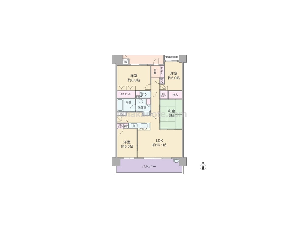専有面積81.69平米の4LDK。共用廊下と玄関・居室の間にはアルコーブと室外機置場があります。LDKに隣接する洋室約5.0帖を子供部屋にすれば、コミュニケーションの機会を自然に持つことが出来ます。対面キッチンは洗面室にもアクセス可能な2WAY動線。和室6帖は室内廊下とLDKの2カ所から出入りでき、LDK側の襖を開放すればLDK約22.1帖大に。収納スペースが豊富にあるのもポイントです。スロップシンク付きのバルコニーは約14.8平米の広さがあり、ガーデニングなどもゆったり楽しめます。