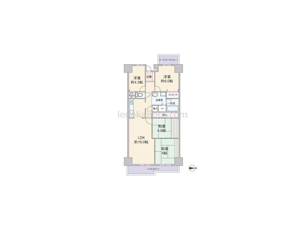 専有面積81.29平米の4LDK。西側、6帖の主寝室にサービスバルコニー付き。キッチンは独立型で家事動線にすぐれたツーウエイ。リビングと和室2部屋が続き間で、生活シーンに合わせてフレキシブルに使用出来ます。