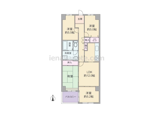 専有面積122.51平米の4SLDK。全居室(5部屋)が南向きのワイドスパンのプラン。共用廊下に直接面する居室が無く、玄関から室内への動線がL字型になっており、プライバシーが確保されています。全室6帖以上、リビングダイニングは16.6帖と...