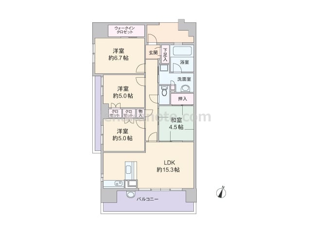 専有面積93.45平米の4LDK。玄関前に専用ポーチがあり、玄関から居室を見通せない、プライバシー重視のプラン。居室の窓が共用廊下に面していないのもポイントです。LDK約17.1帖大に隣接する和室の襖を開放すれば、約23.1帖大のLDKと...