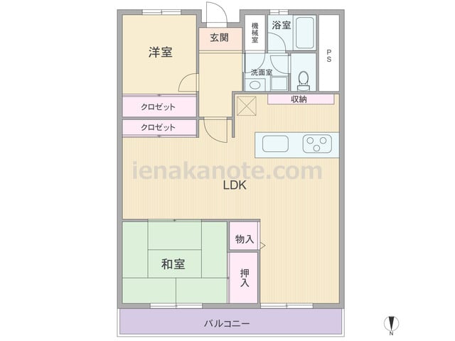 専有面積62.21平米の2LDK。玄関扉は防犯面で安心の内開き型です。キッチンはI型・ウォールタイプ。LDKは約17.0帖の広さがあり、和室3帖はくつろぎのリビングスペースによさそう。家具置場に便利な板間付きです。バルコニーは一部出幅があ...