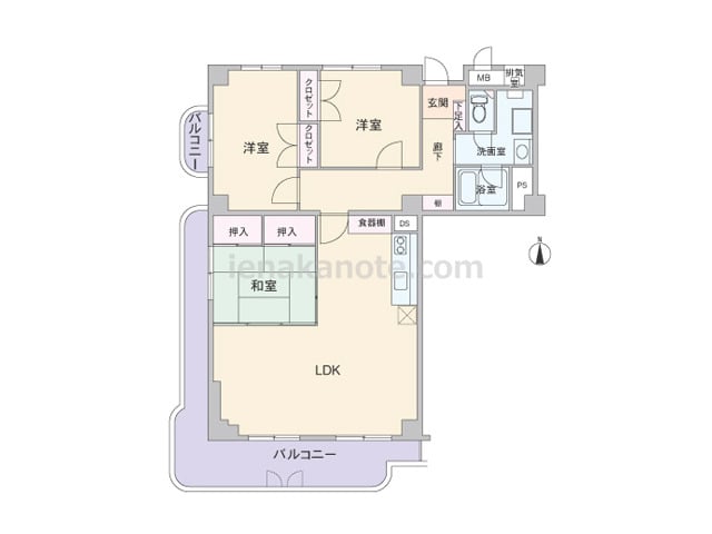 専有面積102.88平米の3LDK。LDKを含む3部屋がバルコニーに面する、通風・採光にすぐれたプラン。和室は個室の使用はもちろん、襖を開放してLDKと空間をつなげて使うのもよさそうです。各居室と室内廊下に収納スペースがあり、キッチン横に...