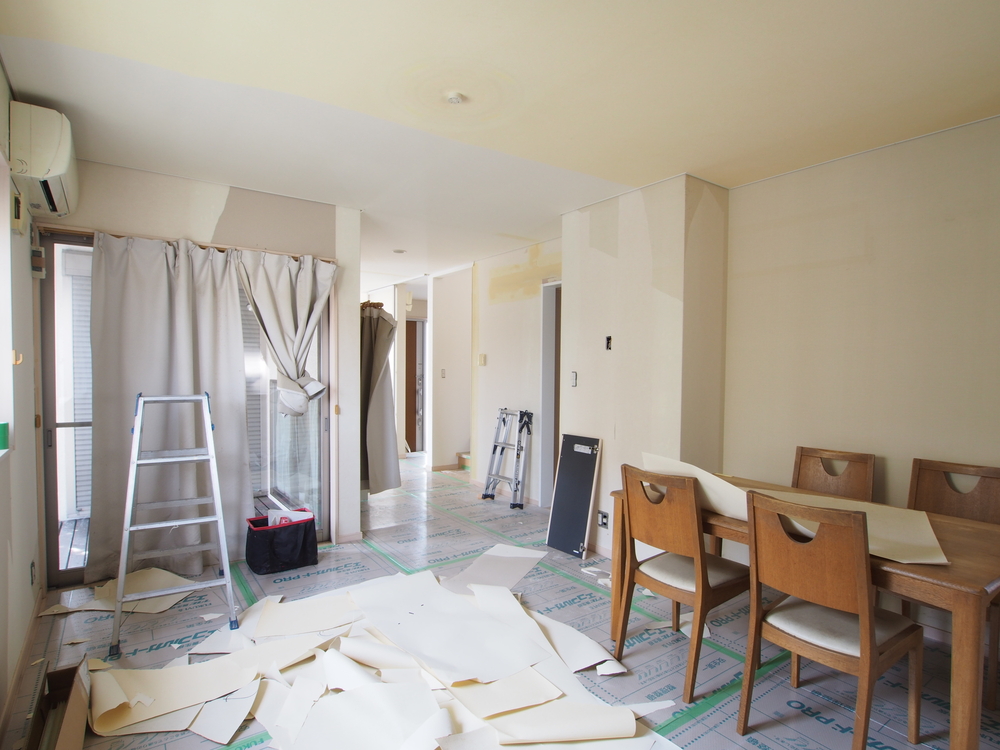 ダイニングのクロスを張り替えました。施工中