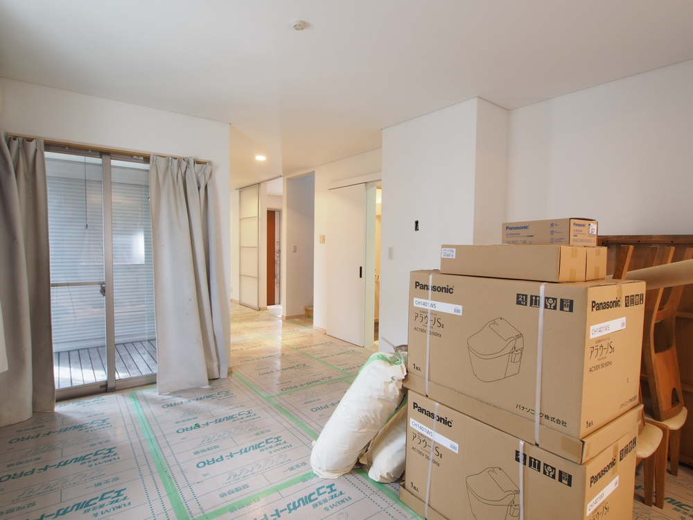 ダイニングの養生を一部撤去。施工中