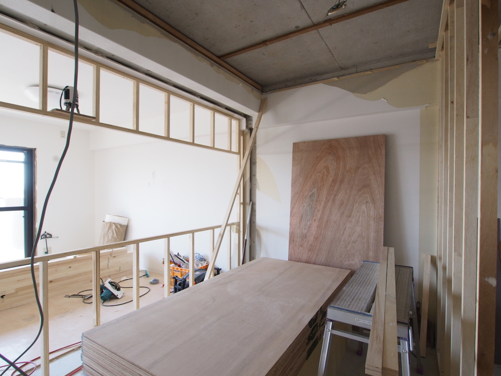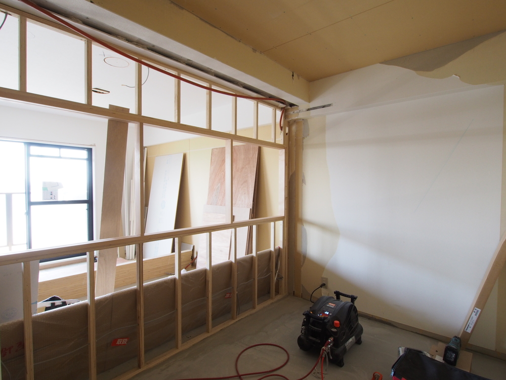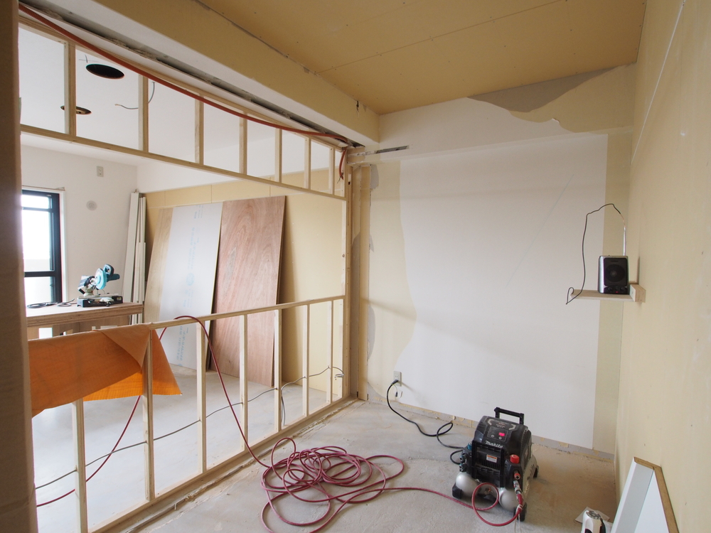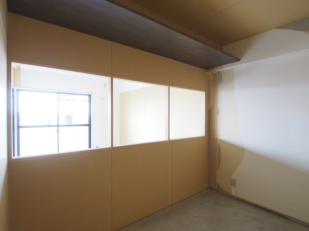 書斎内からはわかりませんが、室内窓にガラスを設置しました。