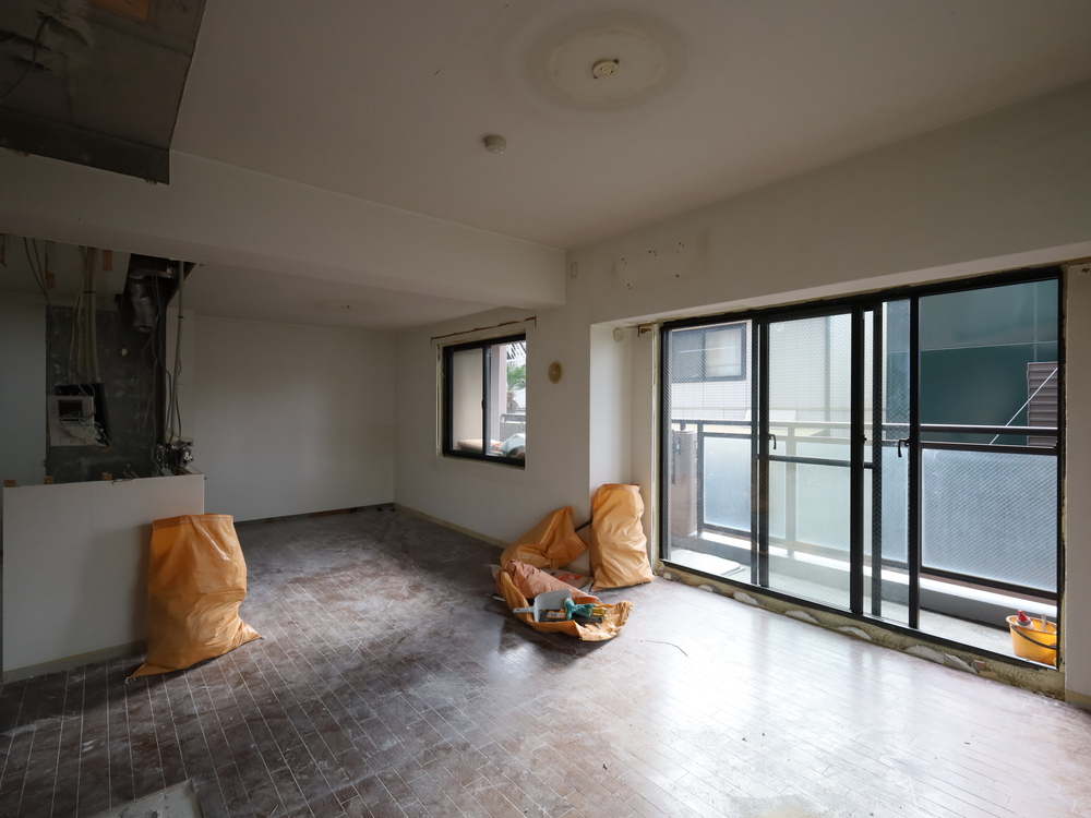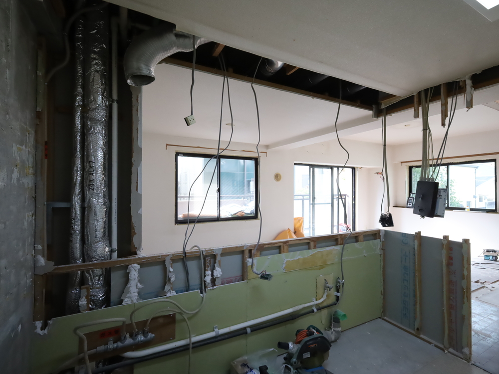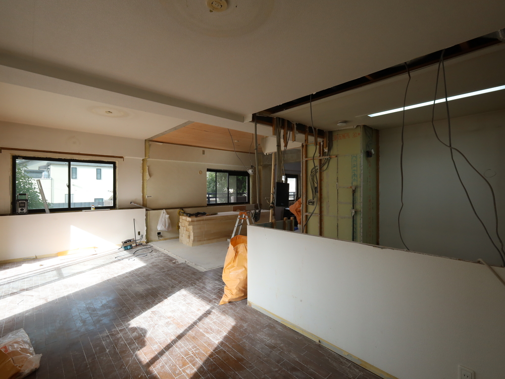リビングの施工中