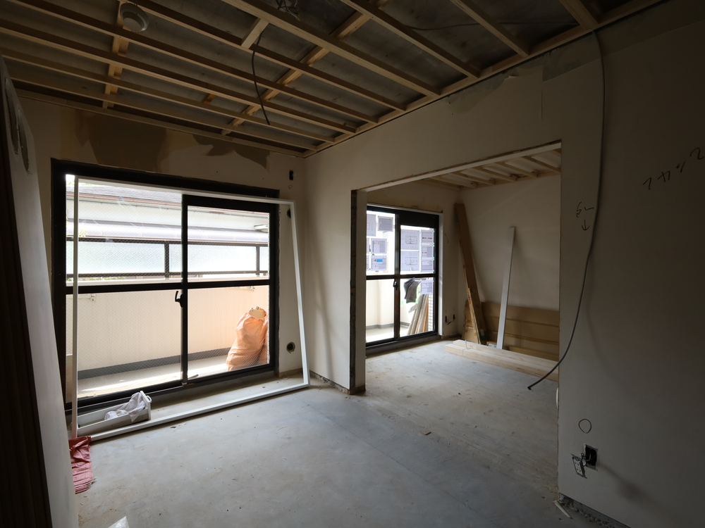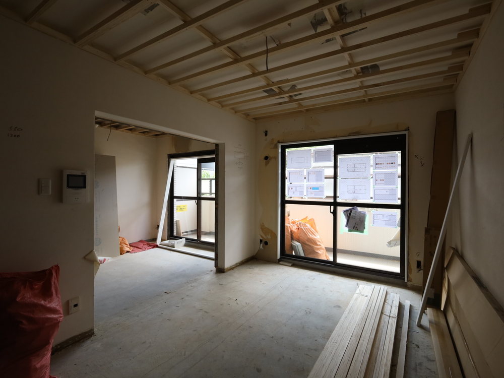 リビングの施工中