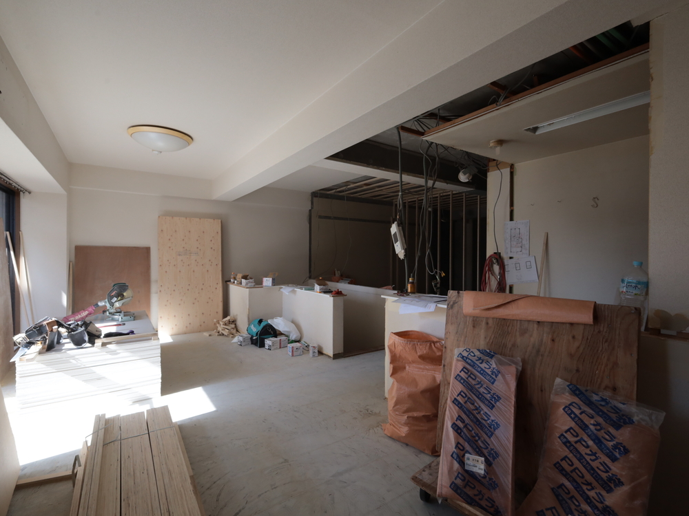 リビングの施工中
