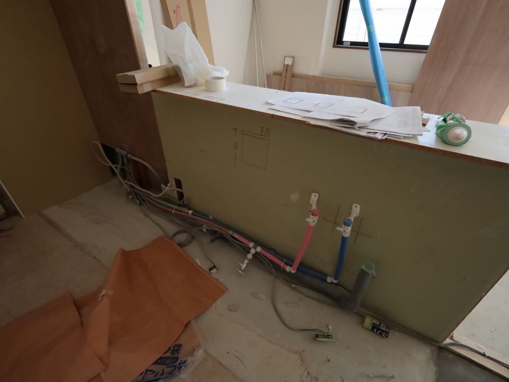 キッチンスペースの施工中