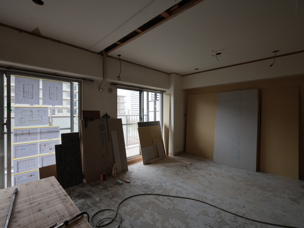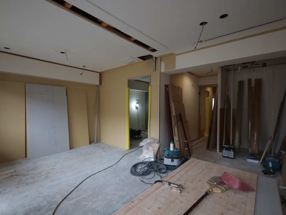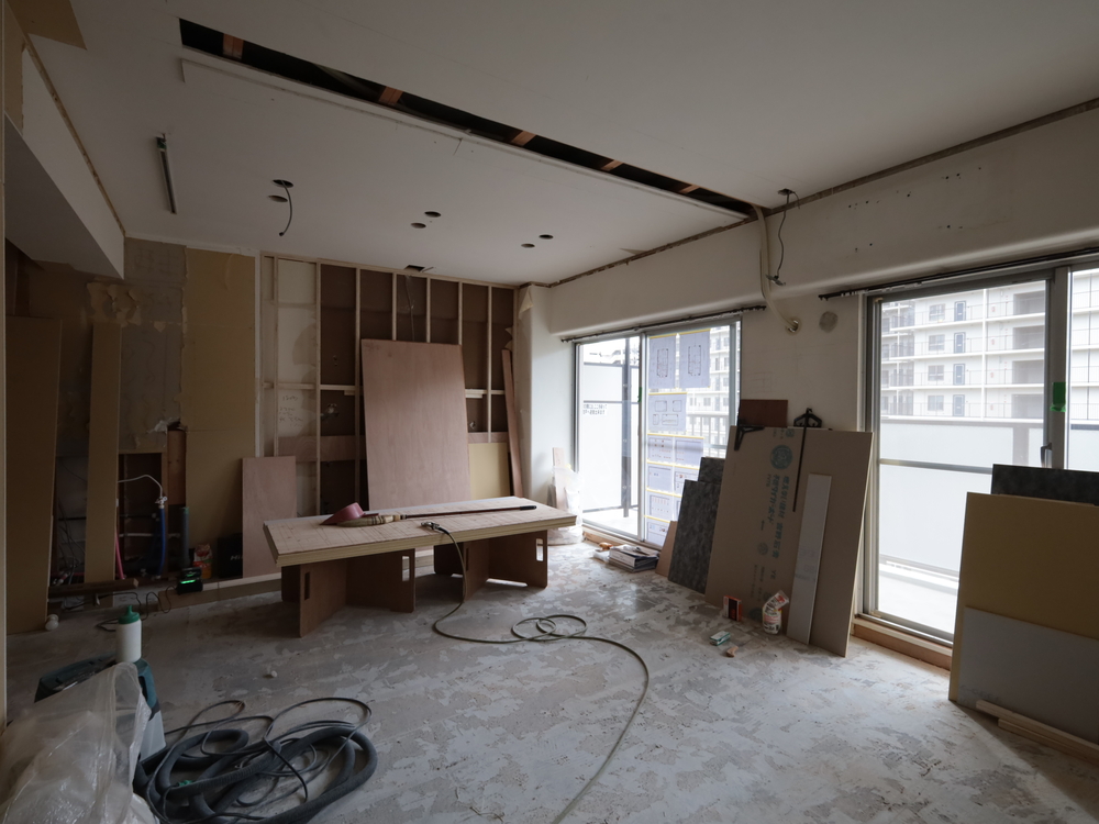 リビングの施工中