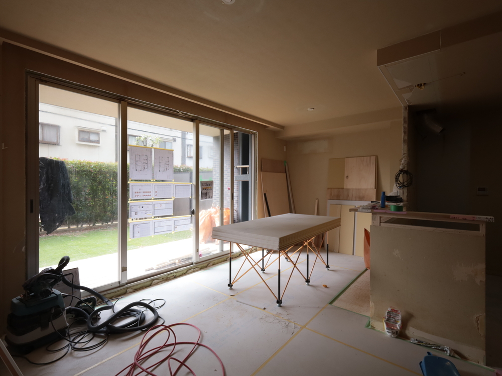 リビングの施工中