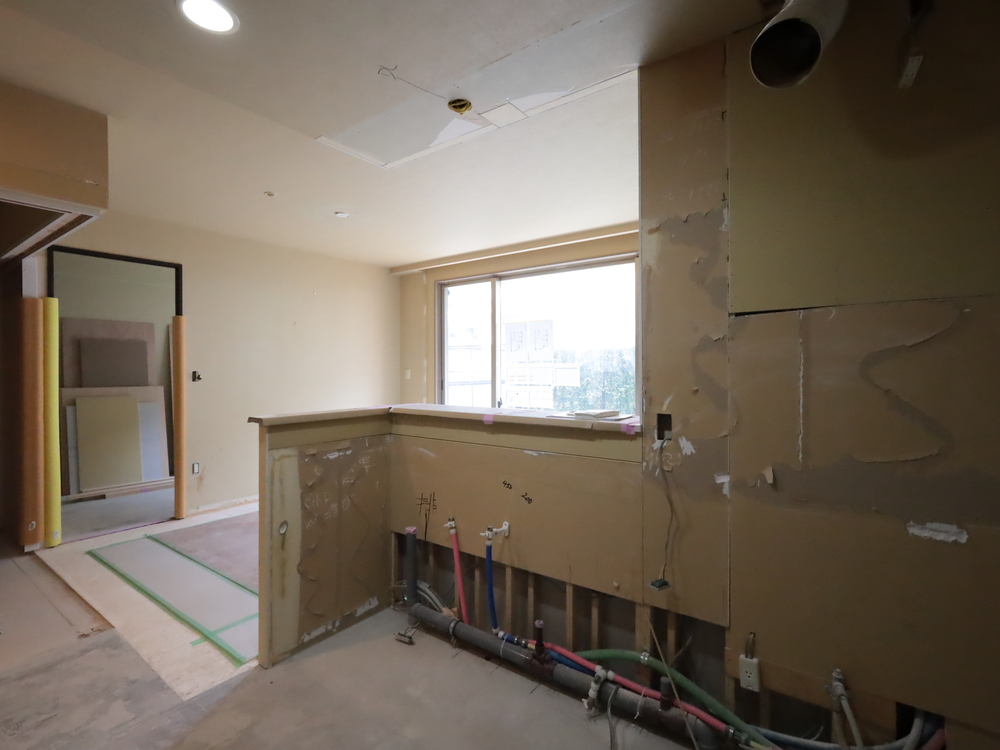 キッチンスペースの施工中