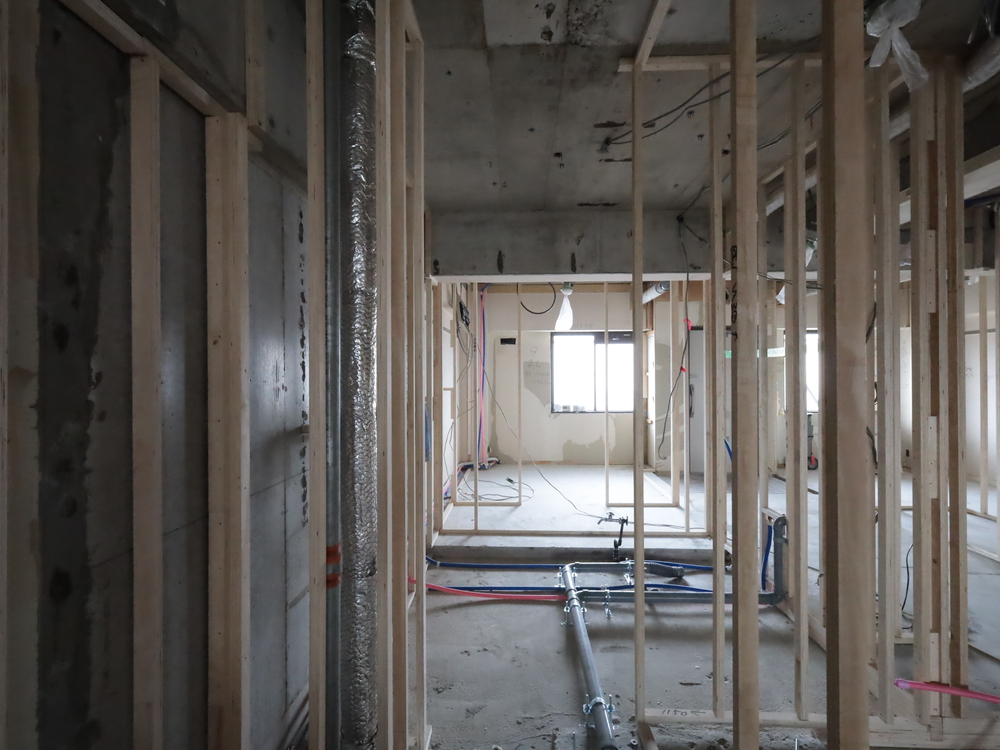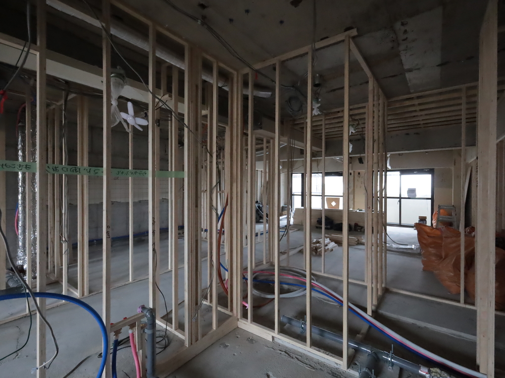 洗面室の施工中