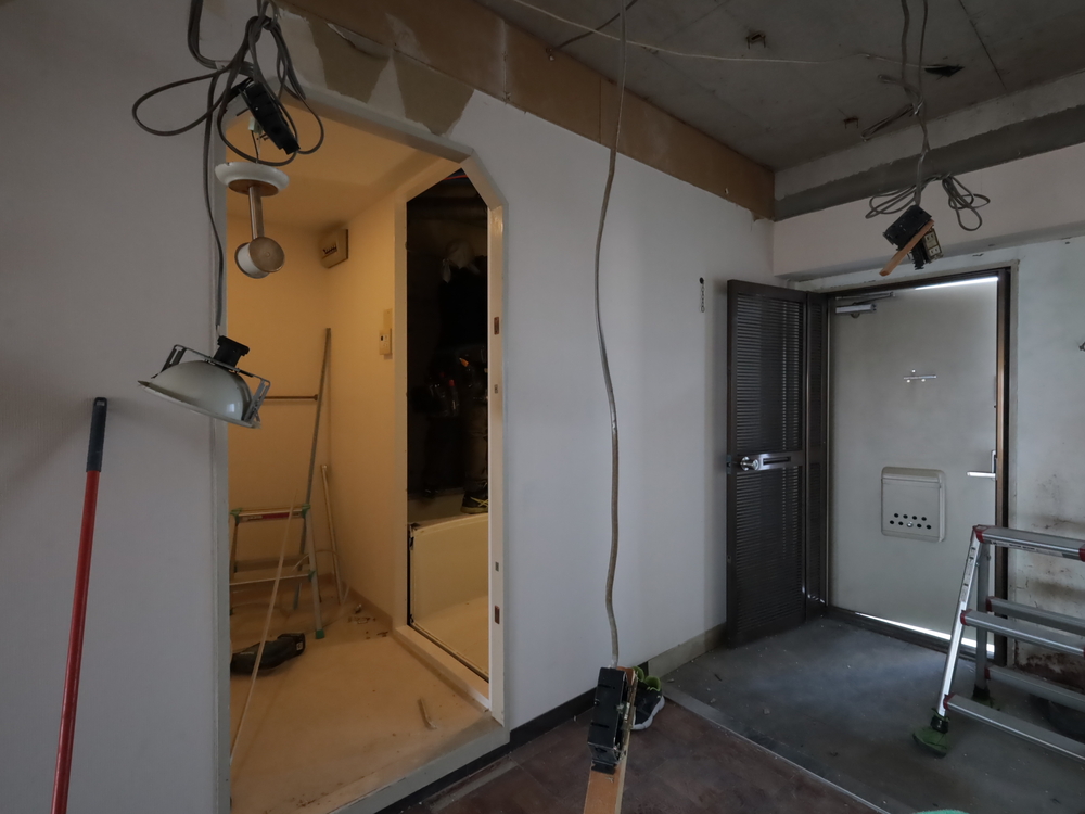 廊下の施工中