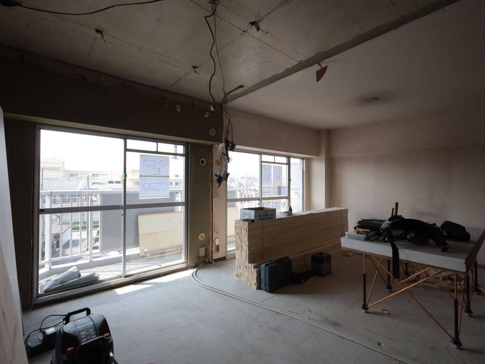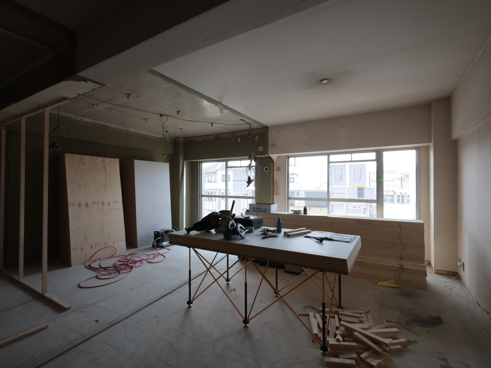 リビングの施工中