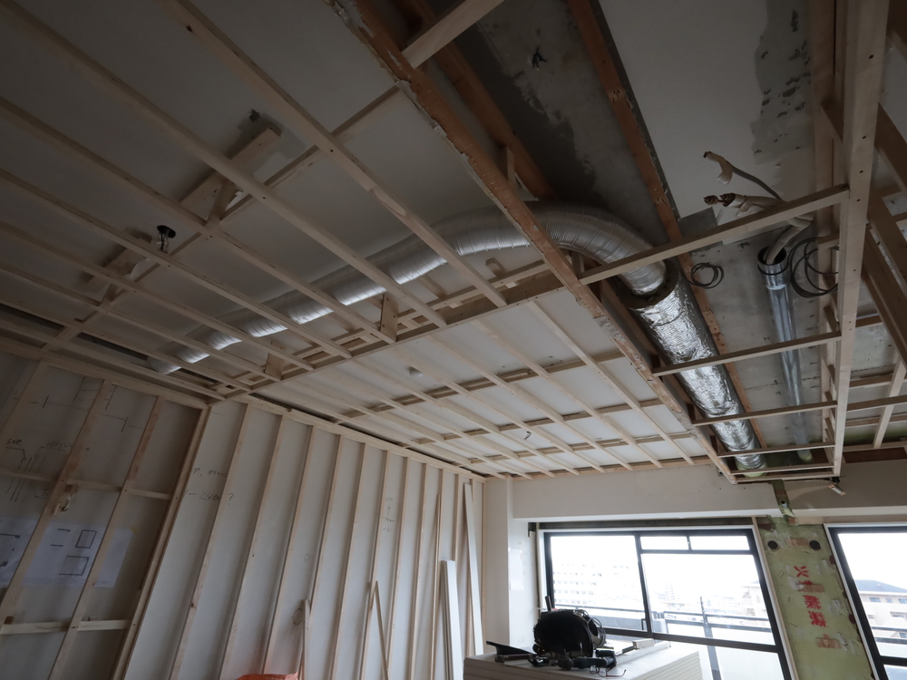キッチンスペースの施工中