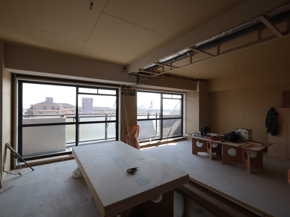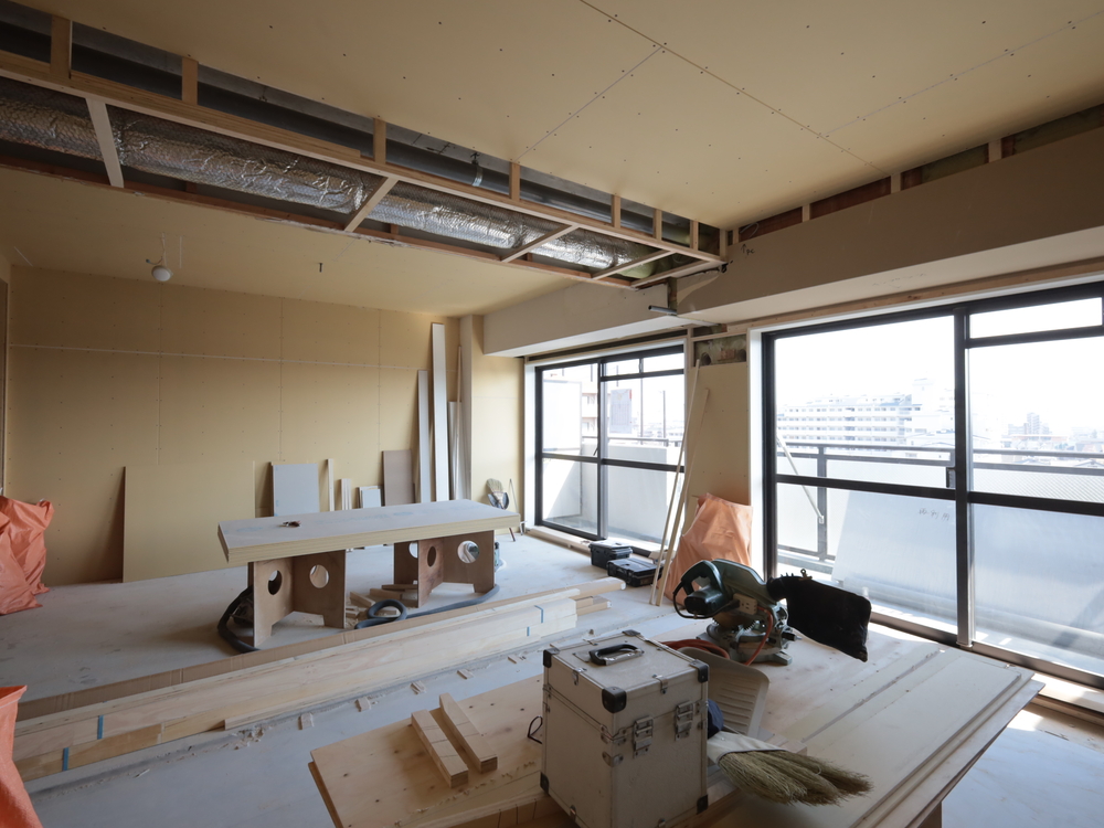 リビングの施工中
