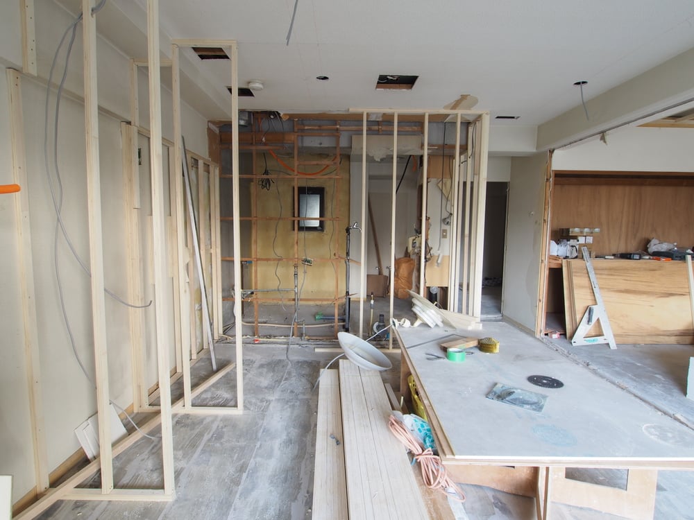 キッチンスペースの施工中