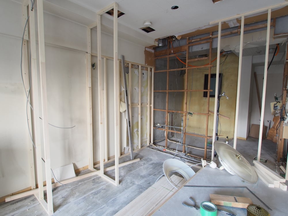 キッチン撤去済み。一部造作工事中。