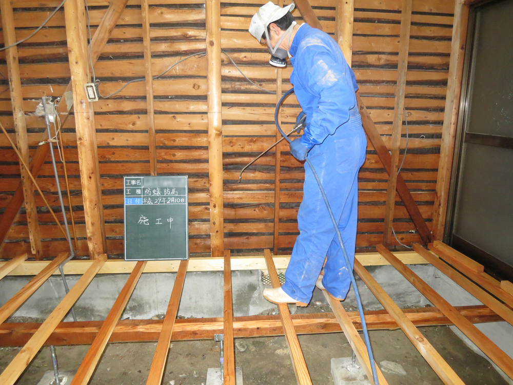 キッチンスペースに防蟻処理を行いました。