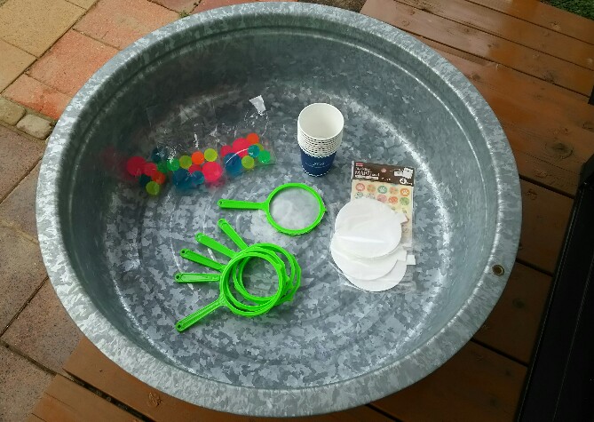 子供たちをおとなしくさせるのに「スーパーボールすくい」も開店!