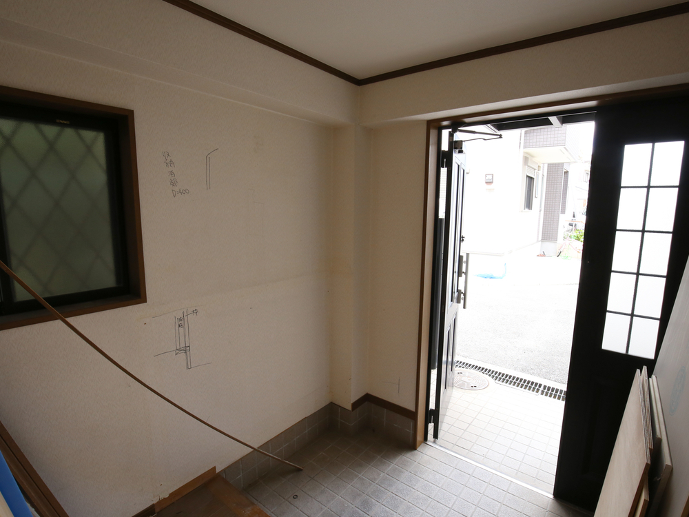 玄関の施工中