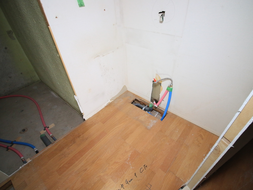 洗面室の施工中