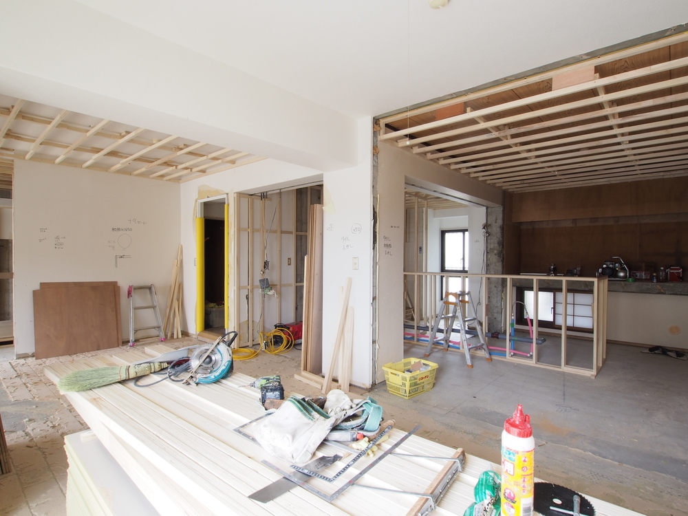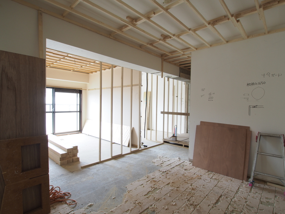 リビングの施工中