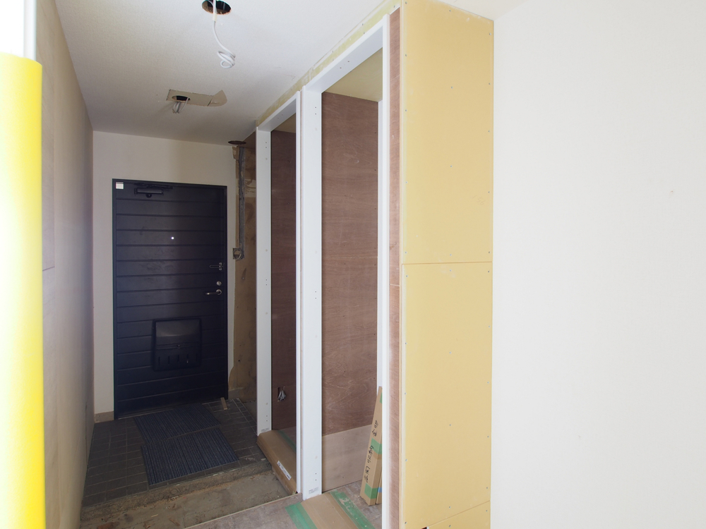 玄関の施工中