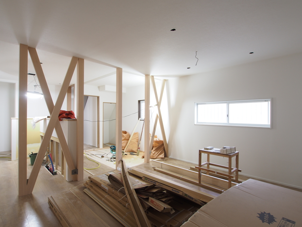リビングの施工中