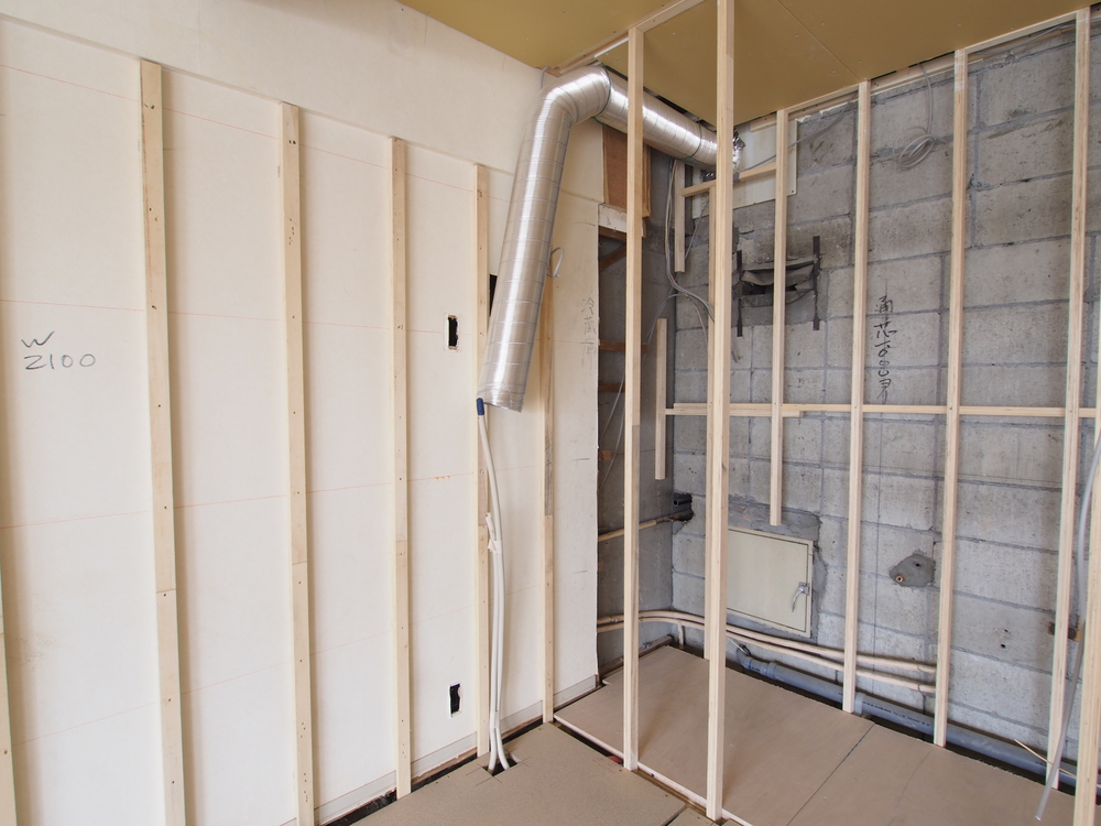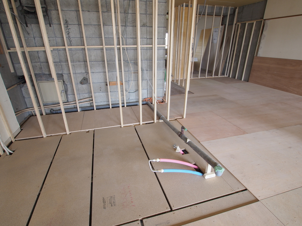 キッチンスペースの施工中