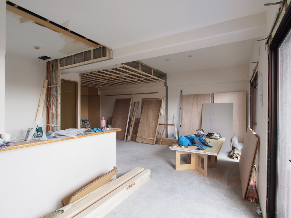リビングの施工中