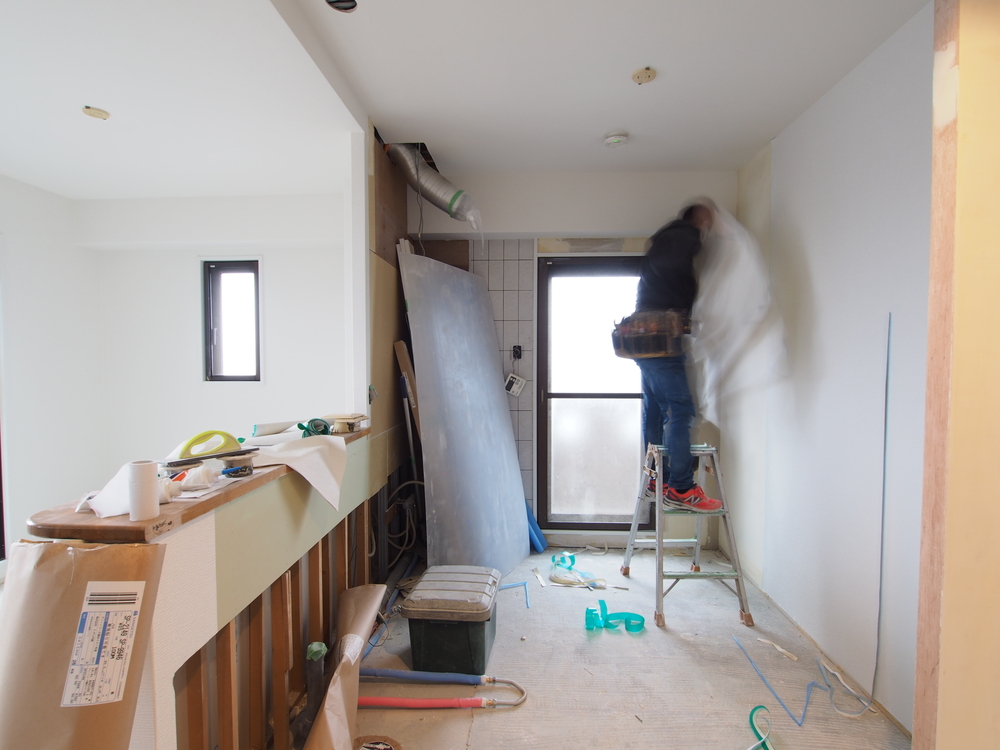 キッチンスペースの施工中