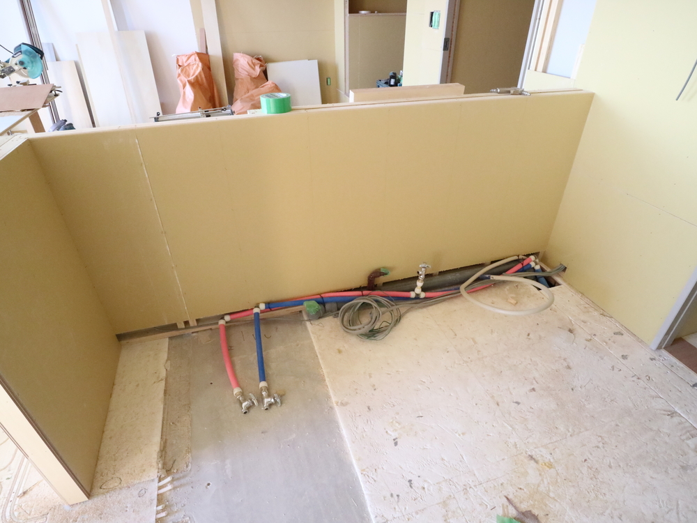 キッチンスペースの施工中