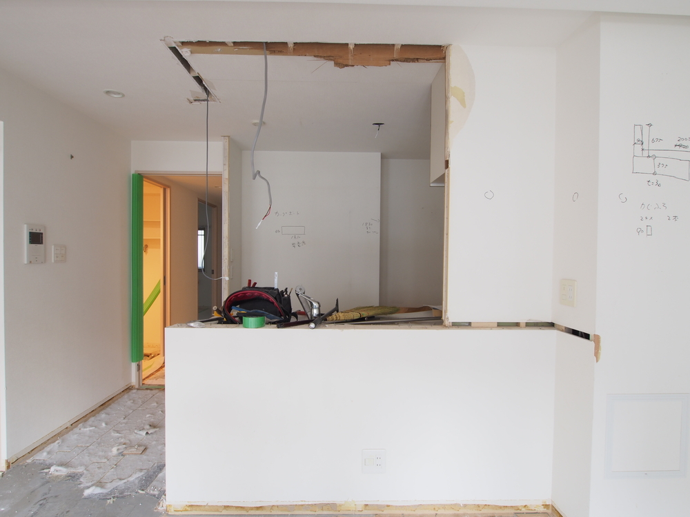 キッチンスペースの施工中