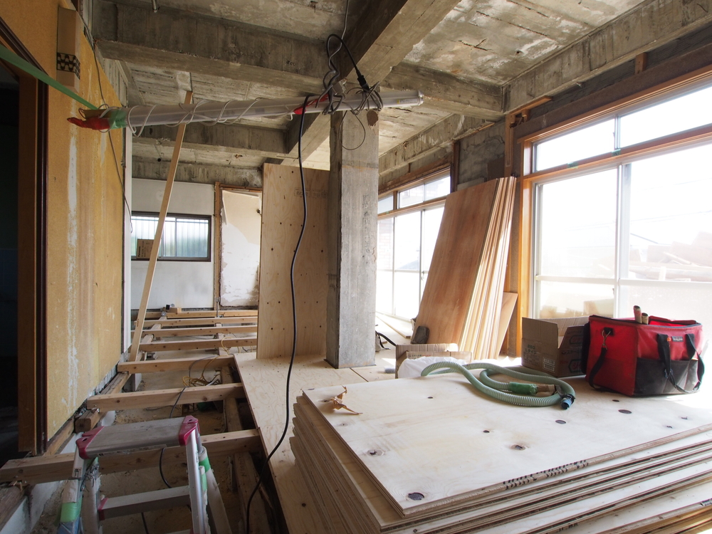 リビングの施工中