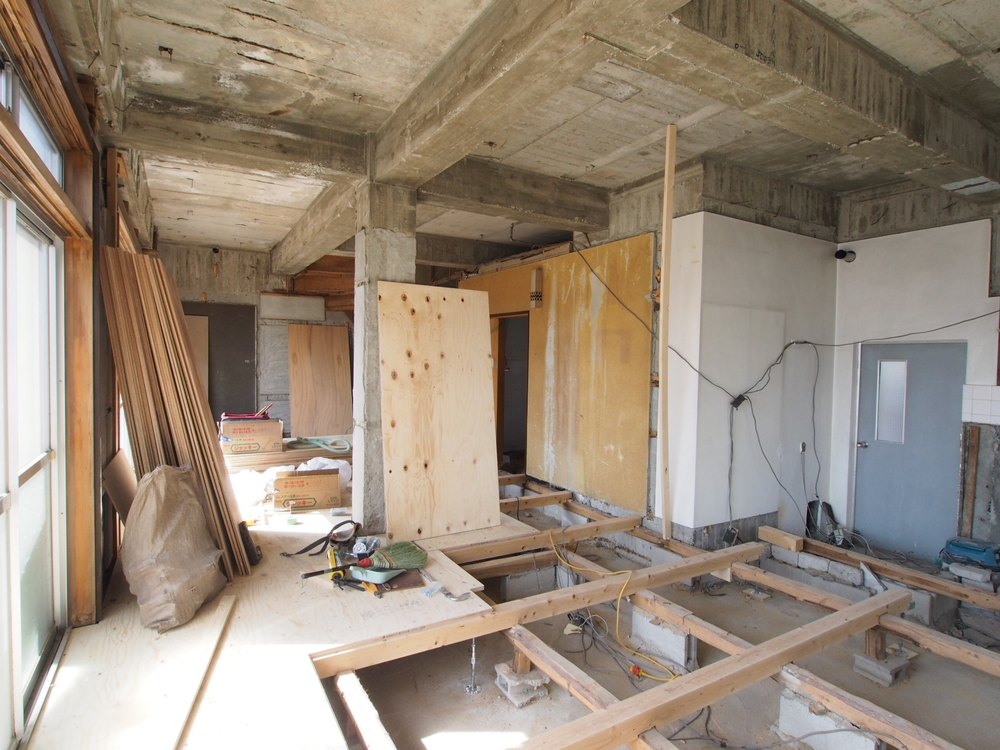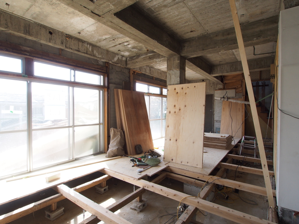床を解体し、新たに下地を造作しています。