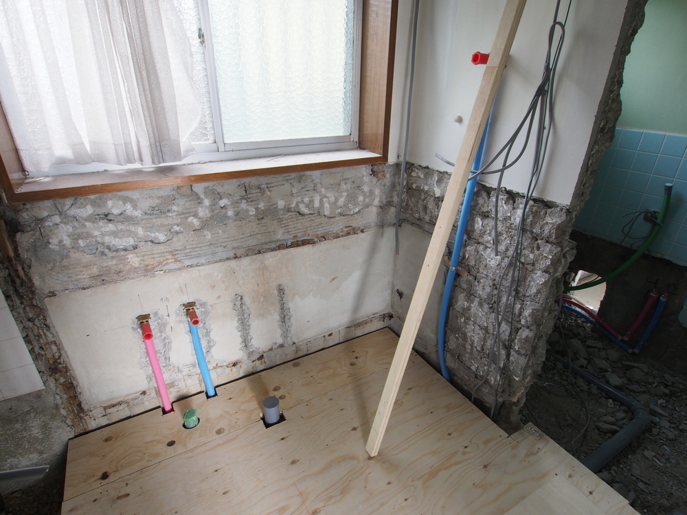 洗面室の施工中