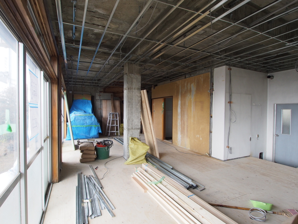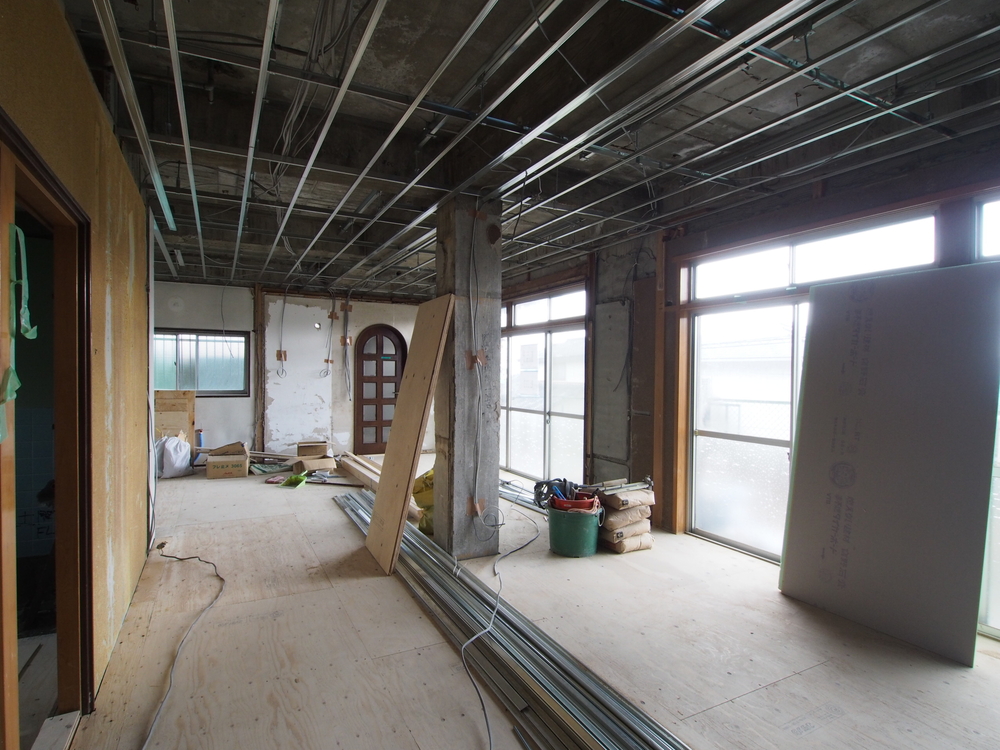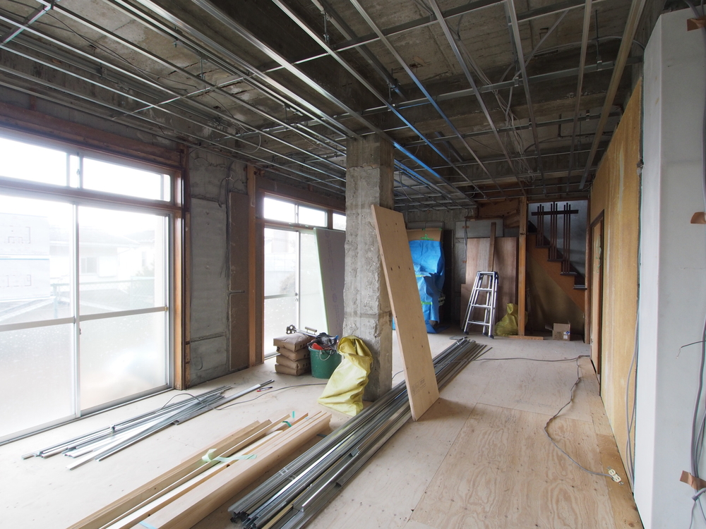 リビングの施工中
