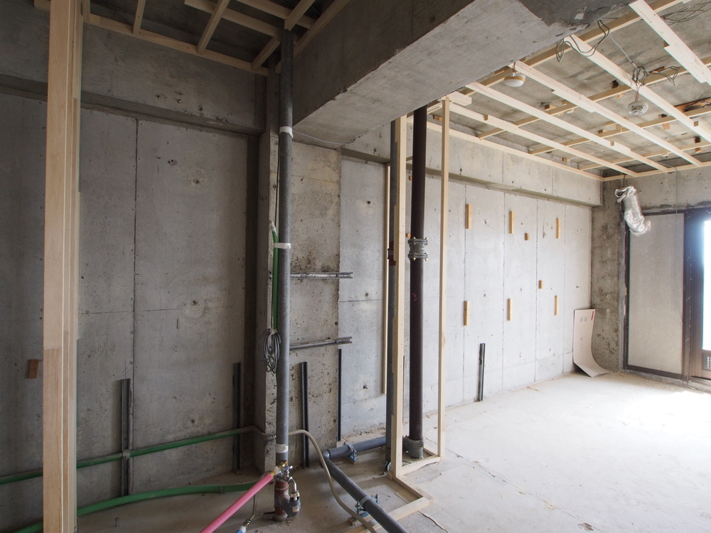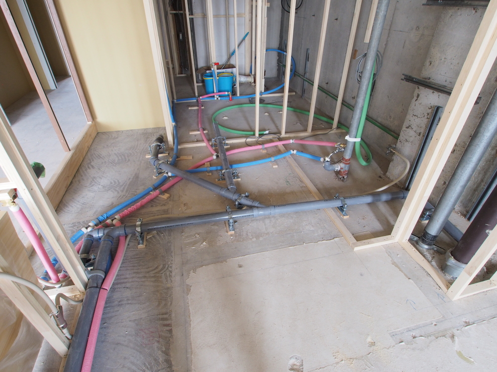 洗面室の施工中