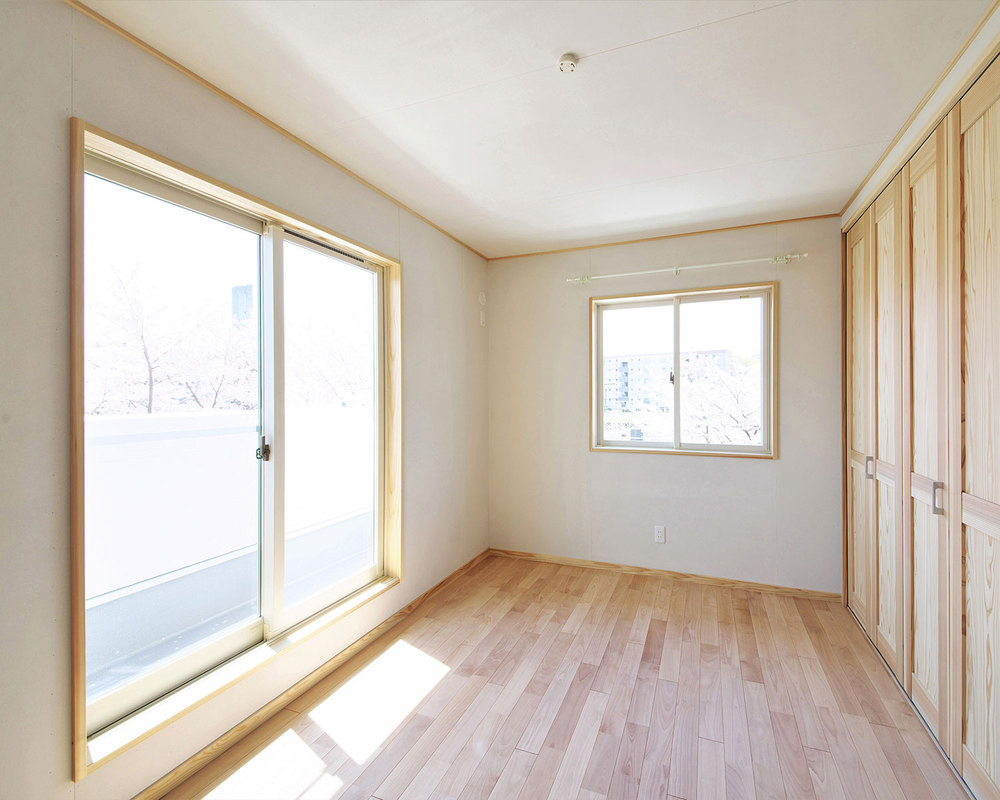 あまり主張しすぎないシンプルな杢目と温かみのある色調が人気の無垢フローリングで、真っ白な壁面などにもよく似合います。