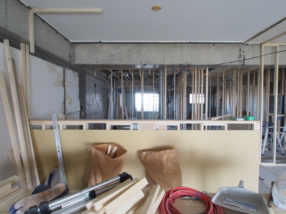 キッチンスペースの施工中