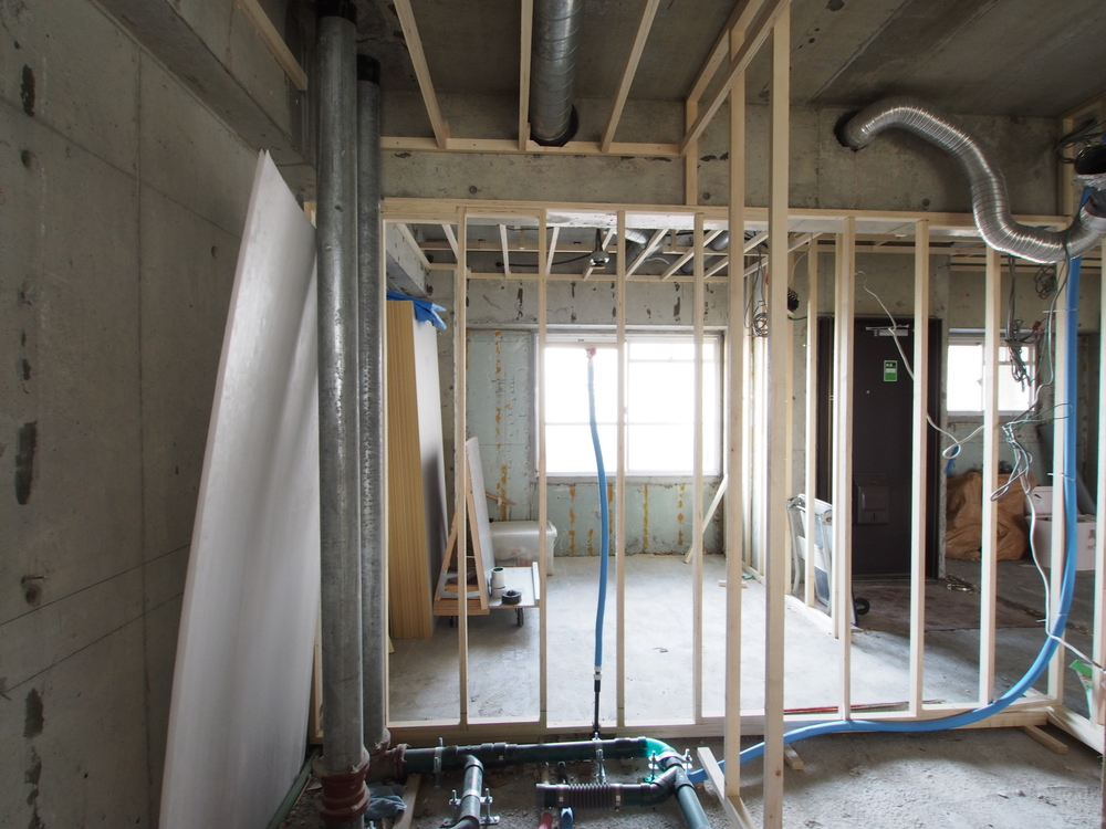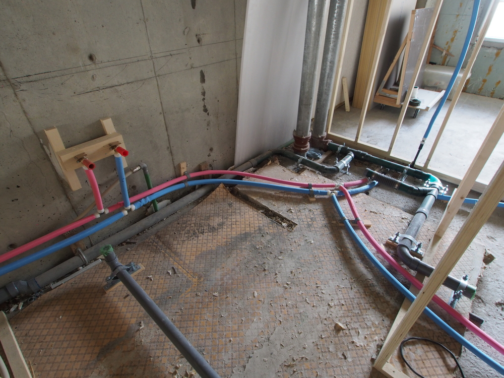 洗面室の施工中