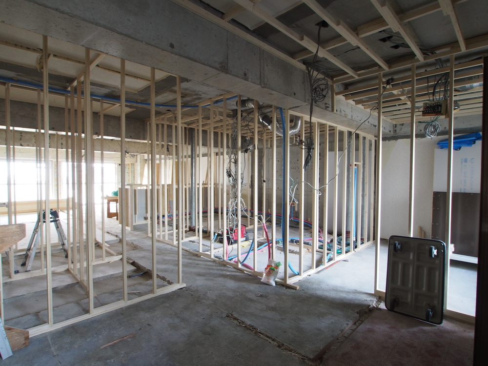 玄関の施工中