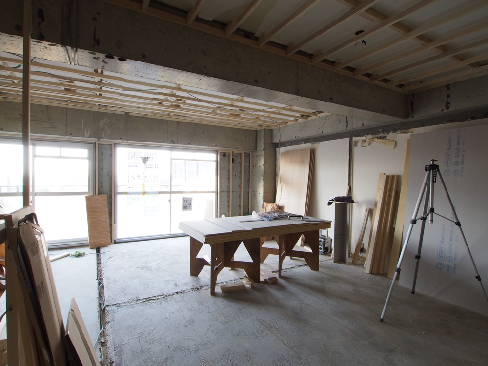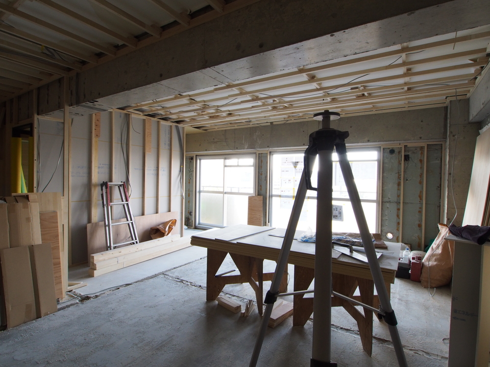 リビングの施工中